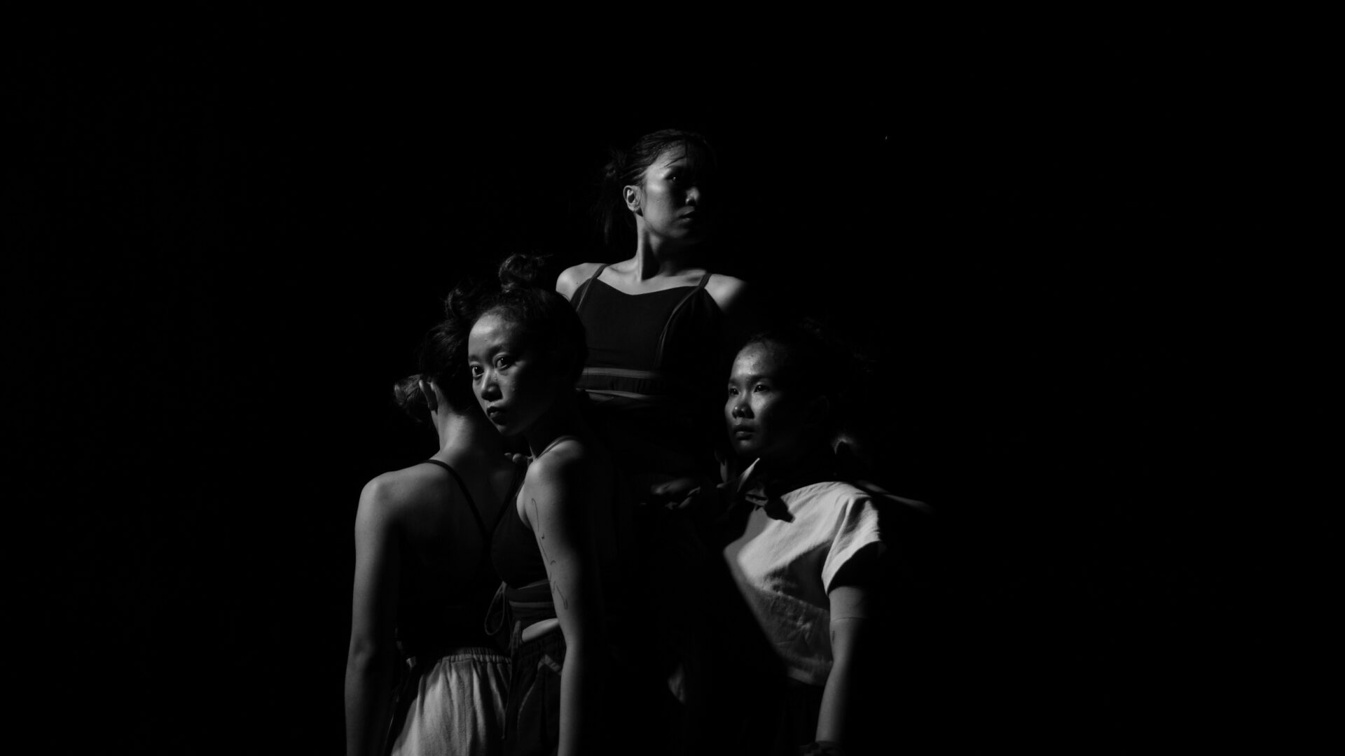 Beragam ekspresi terpancar di raut wajah para penari. Mata yang menatap tajam, memancarkan rasa waspada dan kebingungan. Menambah kedalaman gerak tubuh yang, meski terlihat rapuh, menyiratkan sebuah ketangguhan. Lihatlah betapa kuat adegan mereka mengikat rambut. Sederhana, tapi menghunjam ke kedalaman.